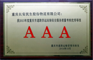 近日,公司獲得 “重慶市道路貨運站場安全服務質(zhì)量考核優(yōu)秀等級AAA”的榮譽稱號。