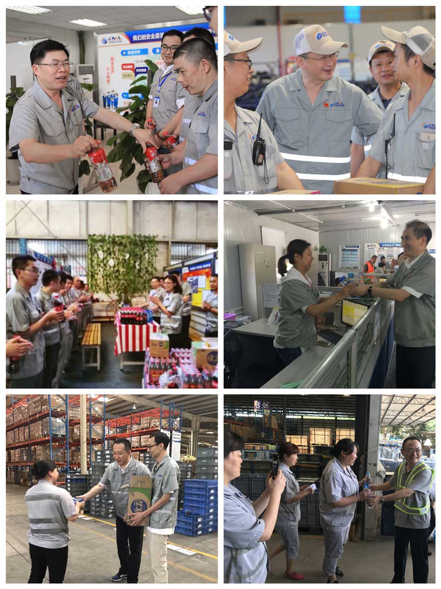 “大家來喝飲料吧,公司領(lǐng)導(dǎo)給大家送飲料來了!”7月20日,公司黨委書記、董事長謝世康,總經(jīng)理、黨委副書記石井崗,黨委副書記、紀(jì)委書記任紅蓮,副總經(jīng)理陳治剛,首席合規(guī)官孫志剛,首席專家黃明,分別來到博宇運(yùn)輸公司、福集供應(yīng)鏈庫房、供應(yīng)鏈調(diào)達(dá)與散雜貨項(xiàng)目、長安汽車歐尚及發(fā)動機(jī)項(xiàng)目,長安轎車入廠物流項(xiàng)目、重慶長安福特入廠物流項(xiàng)目、福特中儲、長安整車項(xiàng)目渝北操作部、長安整車項(xiàng)目魚嘴操作部、輪胎分裝公司、東立包裝公司、鼎捷物流公司生產(chǎn)現(xiàn)場,看望慰問奮戰(zhàn)在高溫下的一線員工,為他們送去了加多寶、脈動、可樂等飲料。