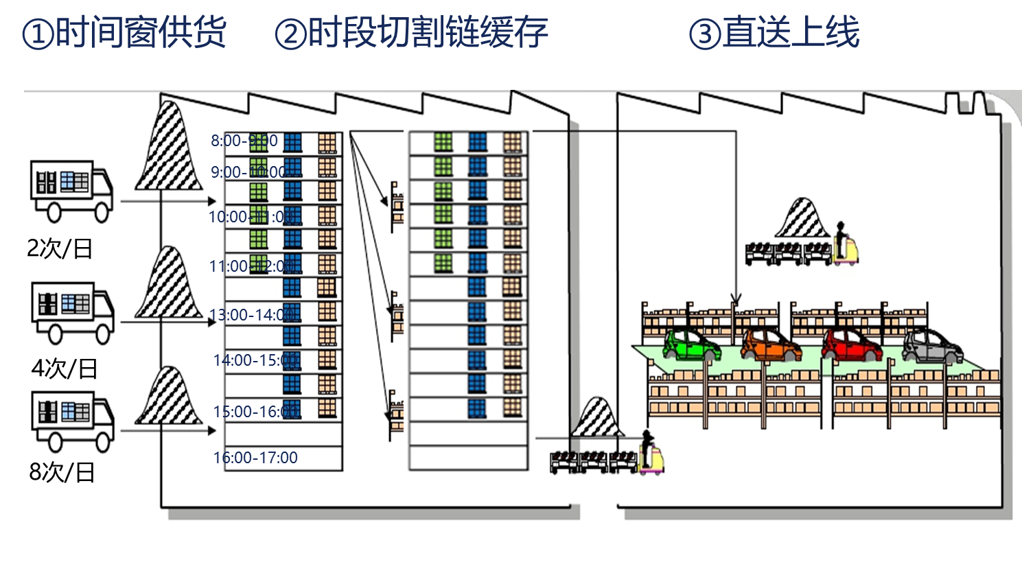 2017年,公司在入廠物流模式創(chuàng)新上有了很大的探索和突破。除了傳統(tǒng)的JIS模式和SPS模式在繼續(xù)推行,循環(huán)取貨和P鏈也在不斷的探索和推進(jìn)中。