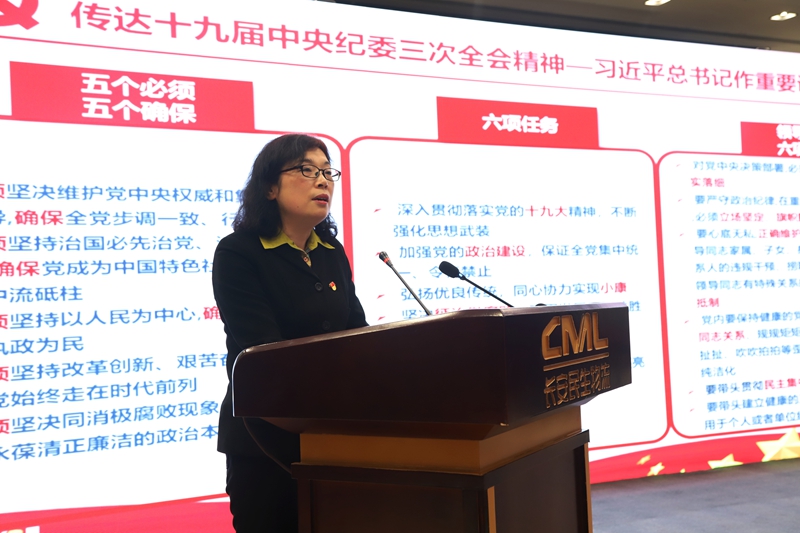 任紅蓮在報告中傳達十九屆中央紀委三次全會、兵器裝備集團黨風廉政建設和反腐敗工作會議精神;總結(jié)2018年全面從嚴治黨、黨風廉政建設和反腐敗工作情況,分析了全面從嚴治黨新形勢新要求,并具體部署了2019年工作任務。