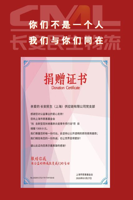 新年伊始,新型冠狀病毒感染的肺炎疫情席卷而來,全國各地疫情防控工作形勢嚴(yán)峻,病毒無情,人間有愛,這是一場全民的戰(zhàn)斗!長安民生物流作為一家有著強(qiáng)烈社會(huì)責(zé)任感的企業(yè),快速響應(yīng),全員發(fā)動(dòng),在積極主動(dòng)配合做好疫情防控工作的同時(shí),發(fā)揚(yáng)“賽美”精神,為奮戰(zhàn)在一線的同志們提供力所能及的幫助,風(fēng)雨同舟,同行天下,共克時(shí)艱。