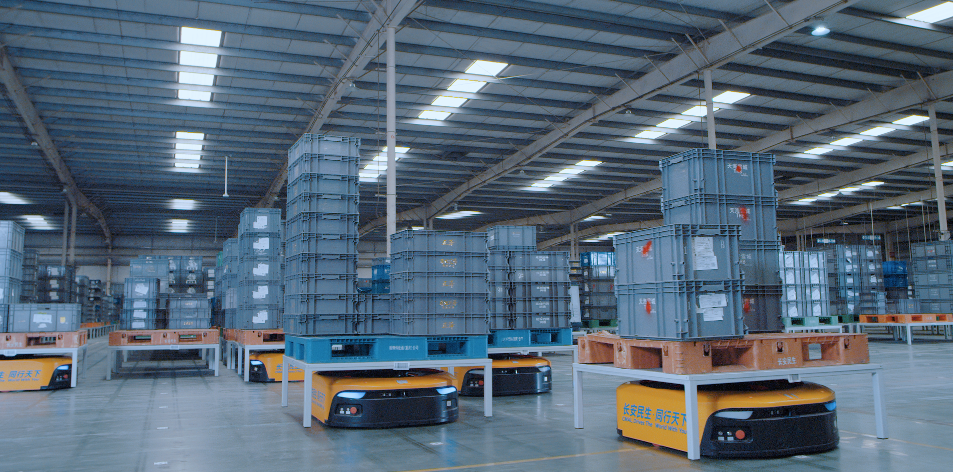 國(guó)內(nèi)最大汽車物流無(wú)人倉(cāng)。由搬運(yùn)機(jī)器人、機(jī)器人調(diào)度系統(tǒng)、倉(cāng)儲(chǔ)管理信息系統(tǒng)等組成,每小時(shí)零部件出入庫(kù)共計(jì)3000箱,實(shí)現(xiàn)汽車零部件的自動(dòng)化歸位存儲(chǔ)、揀選管理。