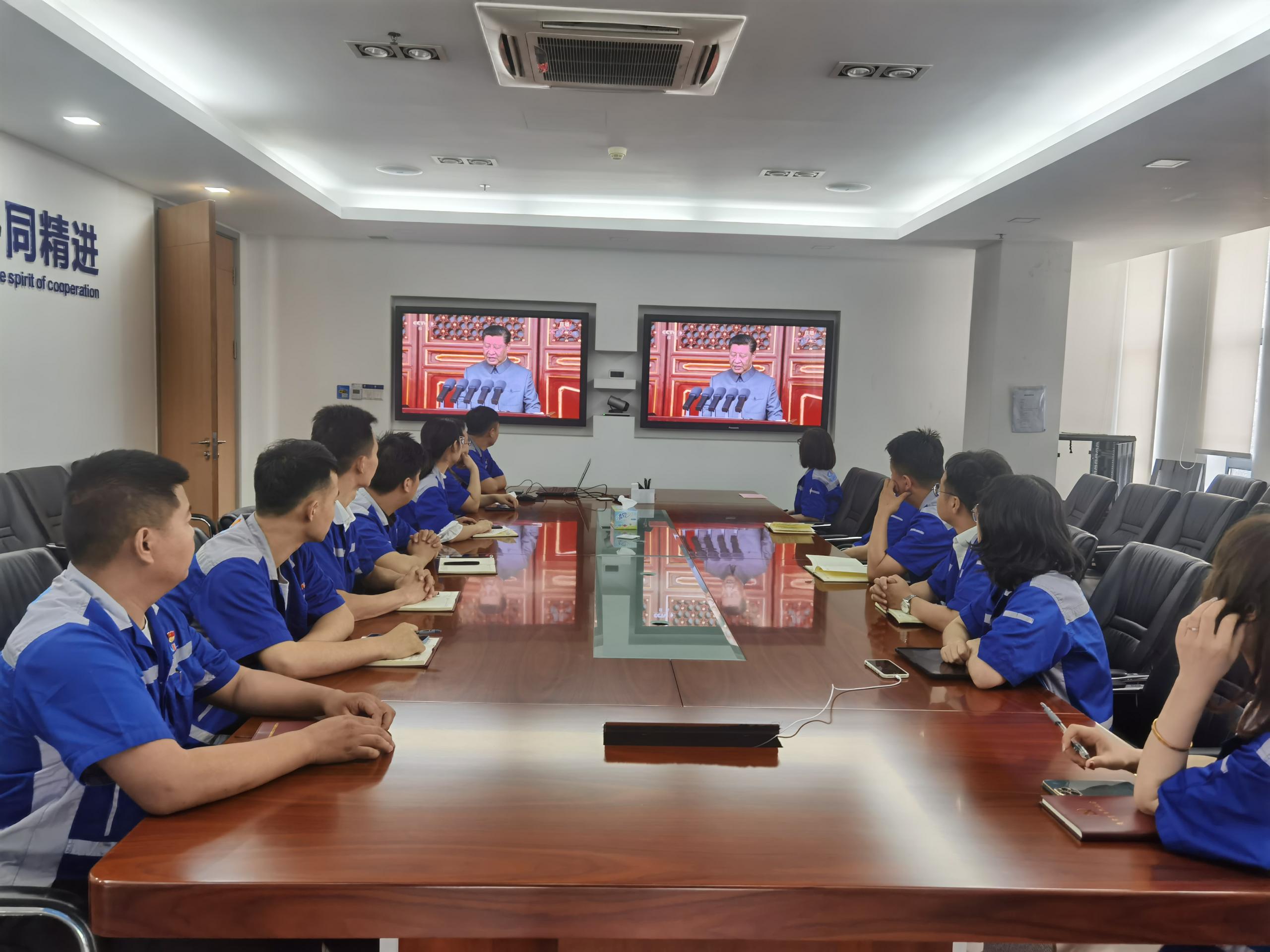 “一百年來,中國共產(chǎn)黨團(tuán)結(jié)帶領(lǐng)中國人民進(jìn)行的一切奮斗、一切犧牲、一切創(chuàng)造,歸結(jié)起來就是一個(gè)主題:實(shí)現(xiàn)中華民族偉大復(fù)興……”聽著習(xí)總書記的講話,會議室一次又一次響起了熱烈掌聲。共同回顧中國共產(chǎn)黨成立100年來波瀾壯闊的光輝歷程時(shí),大家都心情激動,精神振奮,為中國共產(chǎn)黨100年來取得的偉大成就感到無比自豪、無限榮光。