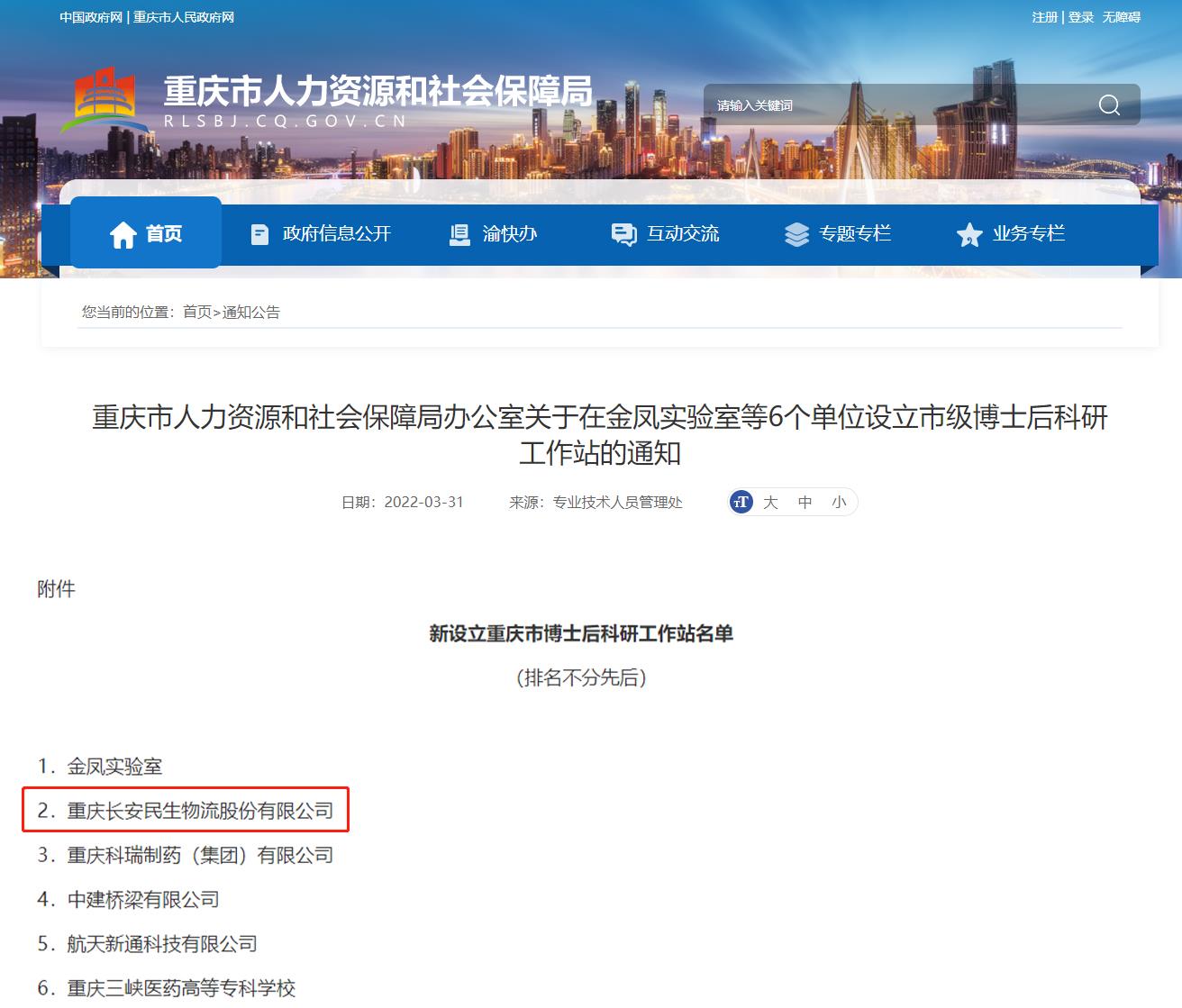 近日,重慶市人力資源和社會保障局辦公室發(fā)布一批博士后科研工作站名單,長安民生物流赫然在列。