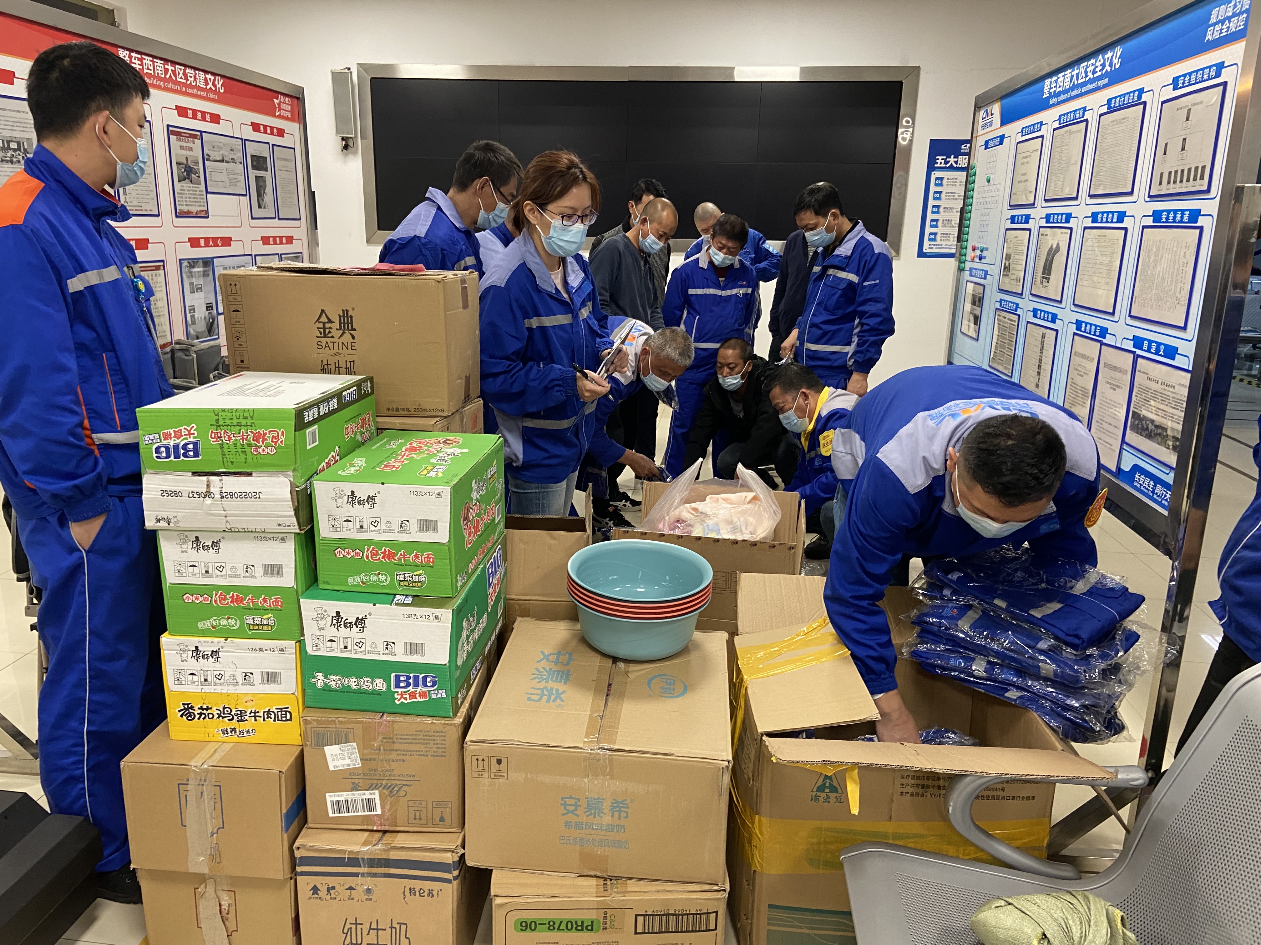 一接收到疫情防控信息,整車西南大區(qū)立即抽派人手,設(shè)立臨時(shí)管控區(qū)。大家都在忙發(fā)運(yùn),誰來做好安全保障?黨員干部、班組“一長三大員”主動(dòng)承包責(zé)任區(qū)、服務(wù)到人,帶頭組織核酸檢測、收集防疫數(shù)據(jù),運(yùn)送物資與發(fā)放食品,為生產(chǎn)人員保駕護(hù)航。