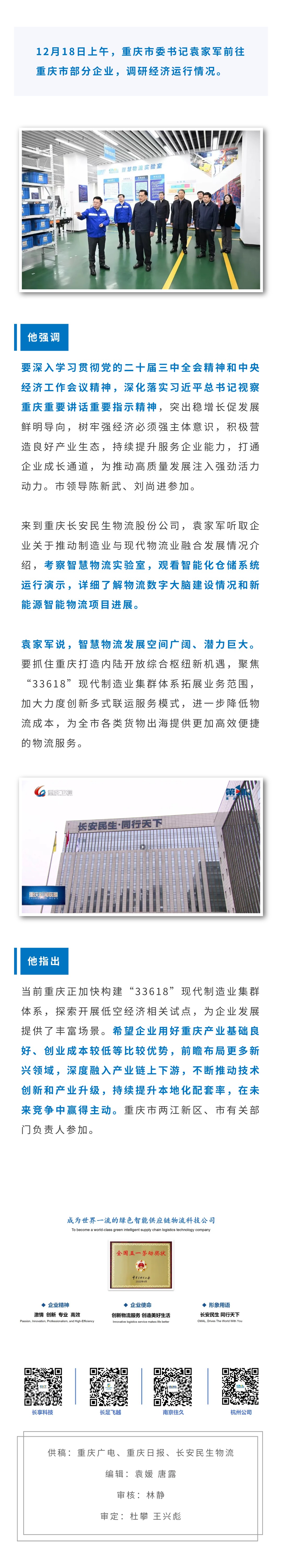 袁家軍調(diào)研長安民生物流:智慧物流發(fā)展空間廣闊、潛力巨大