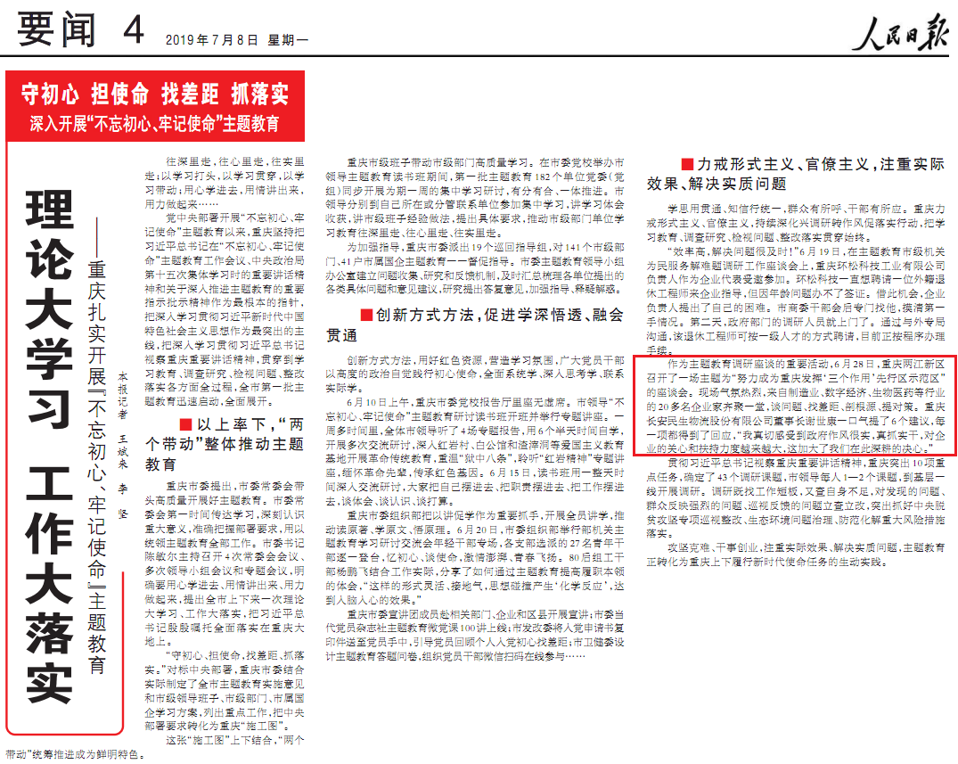 《人民日?qǐng)?bào)》發(fā)篇題為《理論大學(xué)習(xí) 工作大落實(shí)——重慶扎實(shí)開展“不忘初心、牢記使命”主題教育》的文章。