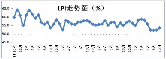 中國(guó)物流與采購(gòu)聯(lián)合會(huì)發(fā)布的2015年10月份中國(guó)物流業(yè)景氣指數(shù)(LPI)為53.5%,比上月升1.3個(gè)百分點(diǎn)。各分項(xiàng)指數(shù)中,除主營(yíng)業(yè)務(wù)利潤(rùn)指數(shù)和主營(yíng)業(yè)務(wù)成本指數(shù)等較上月回落,其他分項(xiàng)指數(shù)較上月有不同程度回升。