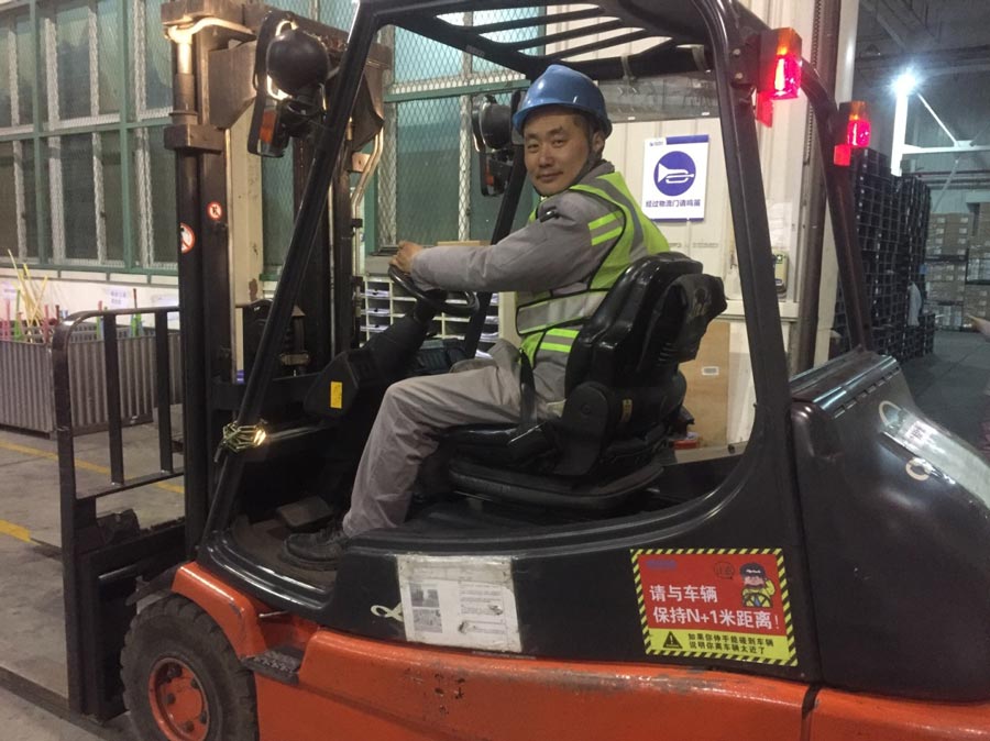 我叫丁正文,是南京長(zhǎng)安民生住久MH課保稅庫(kù)的一名叉車司機(jī)。